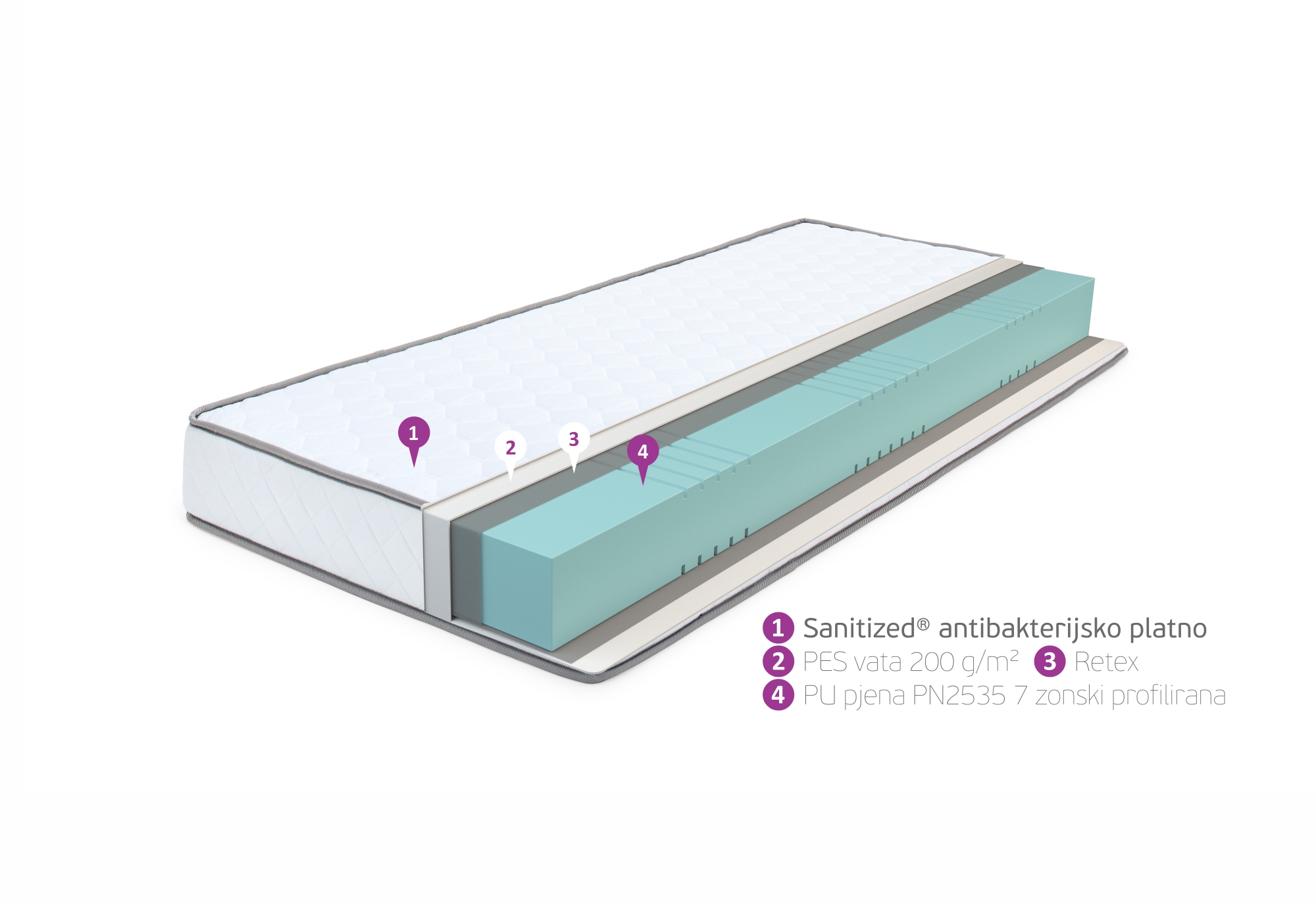 ponude Moj San madraca. Jezgra madraca se sastoji od PU pjene koja pruža dobar