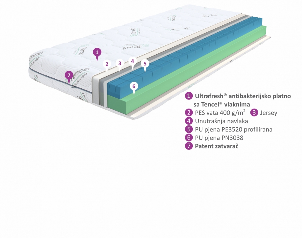 • Tencel® obezbjedjuje suhu i ugodnu klimu spavanja