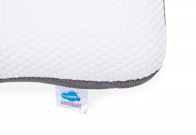 Jastuk MojSan Visco Ergonomic smanjuje ili eliminira hrkanje zahvaljujući idealnom obliku baze jastuka koja Vašu glavu postavlja u stanje mirovanja. Smanjuje bolove u ramenima i vratu zahvaljujući termoaktivnoj osobini prilagođavanja ove vrste materijala pokretima tijela što ga čini jako dobrom potporom koju Vaši vratni mišići i ramena trebaju. Upotrebljiv je sa sve 4 strane te je kompatibilan sa svim pozicijama spavanja, leđnom, bočnom ili spavanju na stomaku.