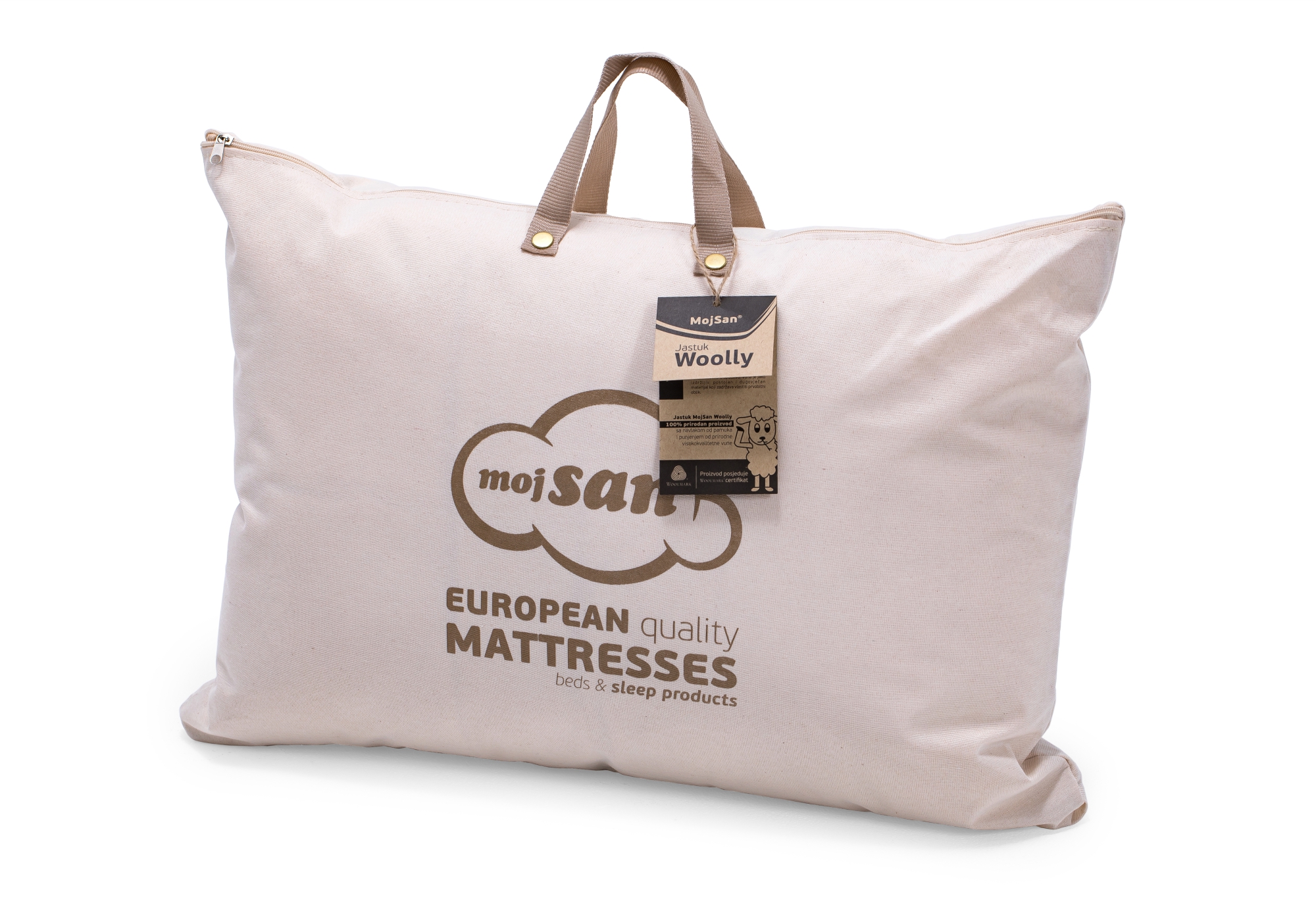 MojSan Woolly kolekcija proizvoda u osnovi ima vrhunsku WOOLMARK čistu novu vunu koja garantira savršene uslove za spavača koji preferiraju 100% prirodan ambijent spavanja.