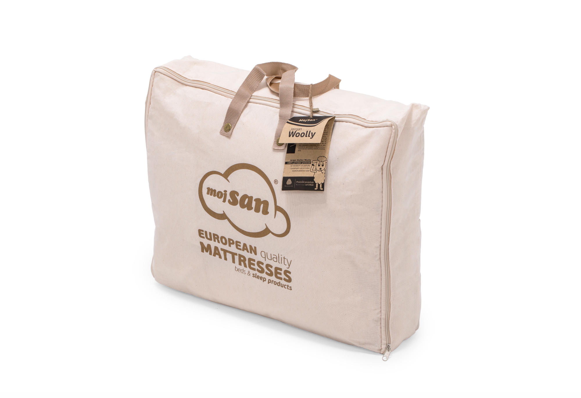 MojSan Woolly kolekcija proizvoda u osnovi ima vrhunsku WOOLMARK čistu novu vunu koja garantira savršene uslove za spavača koji preferiraju 100% prirodan ambijent spavanja.