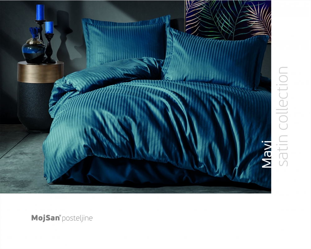 Posteljine MojSan SATIN  za savršeno ugodan ugođaj spavanja. Izrađene su od 100% prirodnih pamučnih saten vlakana izuzetno ugodnih za kožu. Ako želite sebi priuštiti vrhunski i ugodan ambijent spavanja onda je pamučna satenska posteljina idealna za Vaš odabir jer se radi o vrhuncu ponude naše kolekcije!