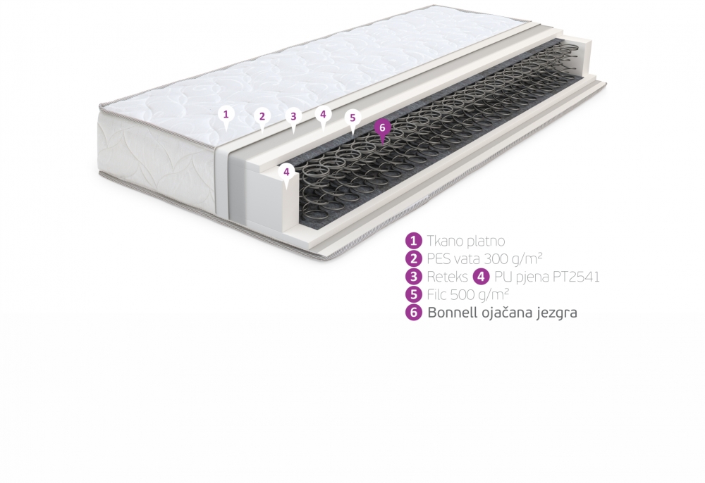 - Obloga od 20 mm poliuretanske pjene omogućava poboljšanu udobnost u poređenju sa drugim sličnim madracima visine 21 cm